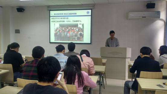 本网讯(记者 黄康琼) 3月23日下午,我院在A8-205召开部门工会换届大会,大会向学院全体工会会员作第一届委员会工作报告,并选举产生新一届工会委员会委员。全院教职工参加了本次会议,大会由党总支副书记徐达主持。