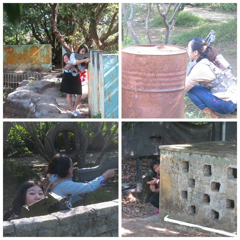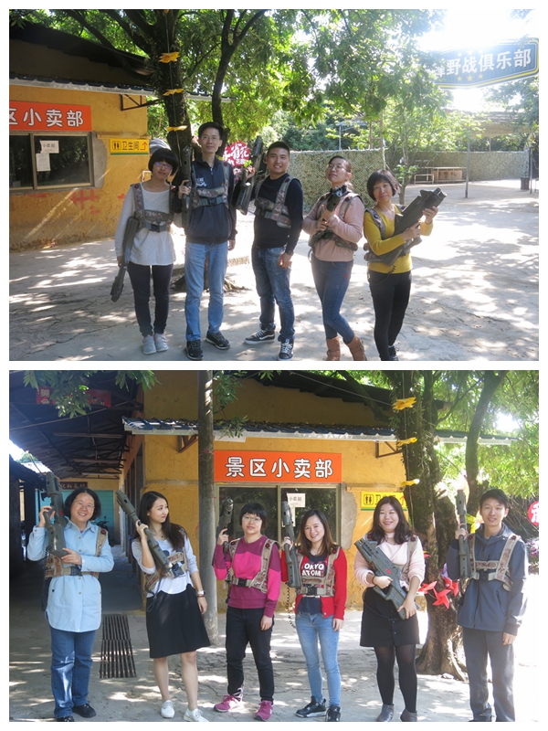 经过1个小时的车程,教职工们来到了素质拓展的第一站进行“雷霆CS野战”。大家兴致勃勃的换上装备,并分成警、匪两组,让大家在生活中能体验上一回《士兵突击》中的真正精髓,在游戏中提供团队的凝聚力。