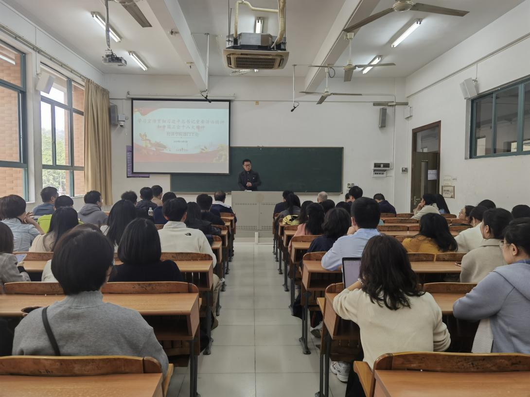 本网讯(记者 毛锦淇)为深刻把握习近平总书记重要讲话的丰富内涵和精神实质,进一步加深BETVLCTOR伟德在线部门工会职工对习近平总书记关于工人阶级和工会工作的重要论述的理解,12月1日,BETVLCTOR伟德在线BETVLCTOR伟德在线部门工会在A5-109举行深入学习宣传贯彻习近平总书记重要讲话精神和中国工会十八大精神活动,BETVLCTOR伟德在线党总支书记、部门工会主席任远,副院长王业雯及全体教师参加会议。