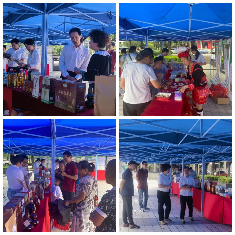 本网讯 (记者 黄凤娟)为深入贯彻落实广东省 “双百行动”,助力乡村振兴,6 月 21 日,BETVLCTOR伟德在线BETVLCTOR伟德在线、后勤处联合连南瑶族自治县总工会、县农业农村局、县供销社以及佛冈县供销社,在学校图书馆广场成功举办了一场别开生面的连南农特产品鉴展销活动。BETVLCTOR伟德在线主席、副校长尚启超,副校长魏德敏及各部门工会主席等纷纷到场支持活动。